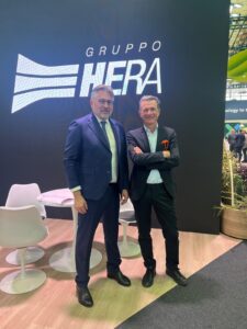 Il Presidente di Confservizi E-R ha dunque visitato i principali spazi espositivi, incontrando i vertici delle realtà che stanno trasformando il volto energetico della regione. Nel corso della giornata inaugurale, Bessi si è confrontato con il Presidente del Gruppo Hera, Cristian Fabbri, visitando lo stand della multiutility dedicato alle soluzioni d’avanguardia per la decarbonizzazione e l’economia circolare.