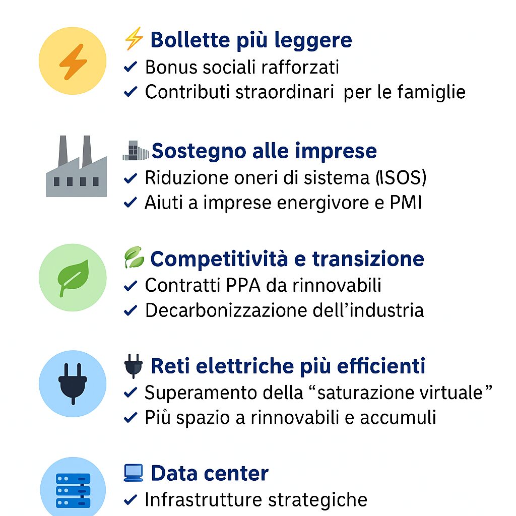 Il provvedimento rafforza gli strumenti di sostegno contro il caro‑energia attraverso: